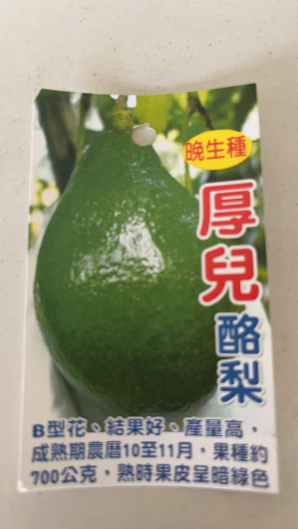晚生種酪梨,B花,約11月~2月採收。